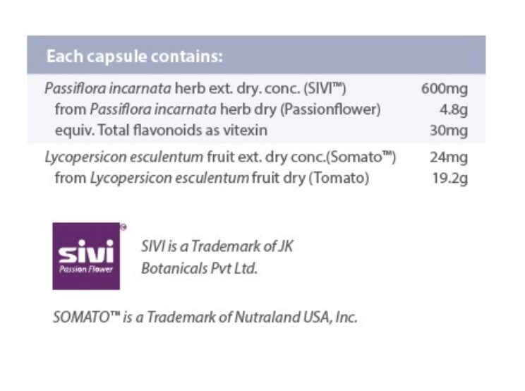 RestoraSleep™ features SIVI™, a clinically trialled passionflower extract using a scientifically developed extraction method to highly concentrate and standardise the flavonoids to 30mg per capsule. Grown without pesticides, SIVI™ ensures the passionflower extract is authentic and sustainably sourced by using the roots of the existing plant to start the new cultivation cycle.